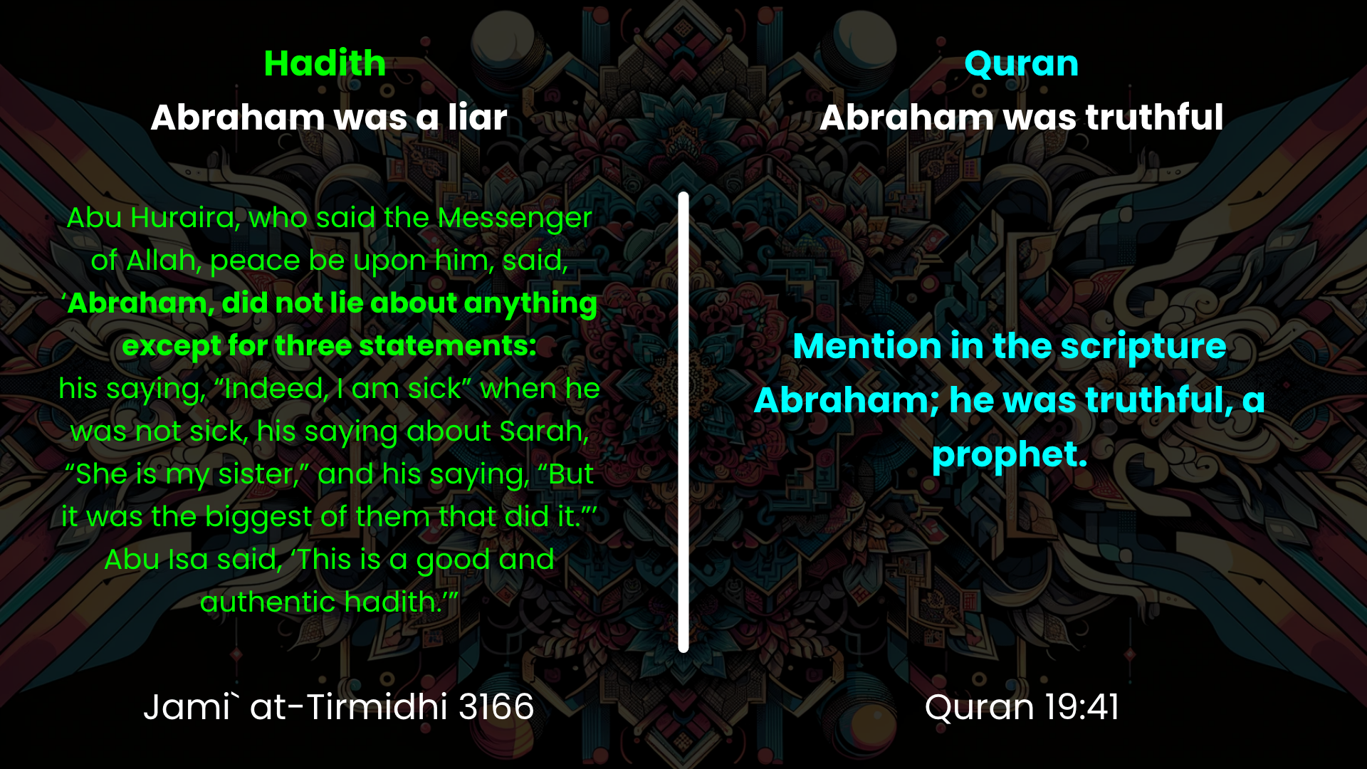 {% embed url="<https://qurantalkblog.com/2023/11/25/abrahams-honesty-quran-vs-hadith/>" %}
